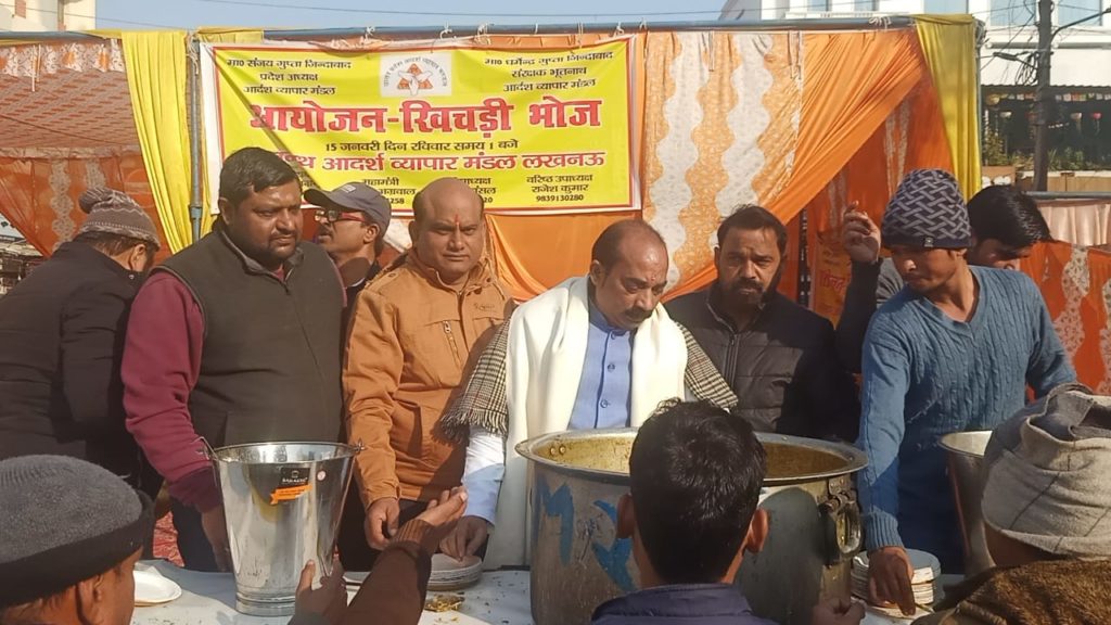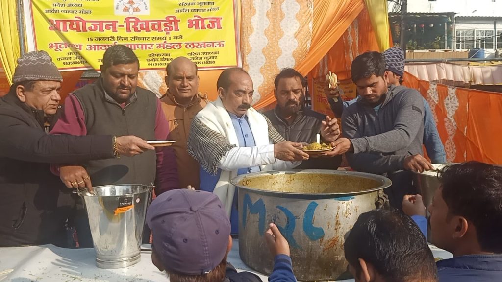 लखनऊ। उत्तर प्रदेश की राजधानी लखनऊ में रविवार को मकर संक्रांति के अवसर पर “उत्तर प्रदेश आदर्श व्यापार मंडल, भूतनाथ मार्केट” के तत्वाधान में भूतनाथ मार्केट में खिचड़ी भोज का आयोजन हुआ।