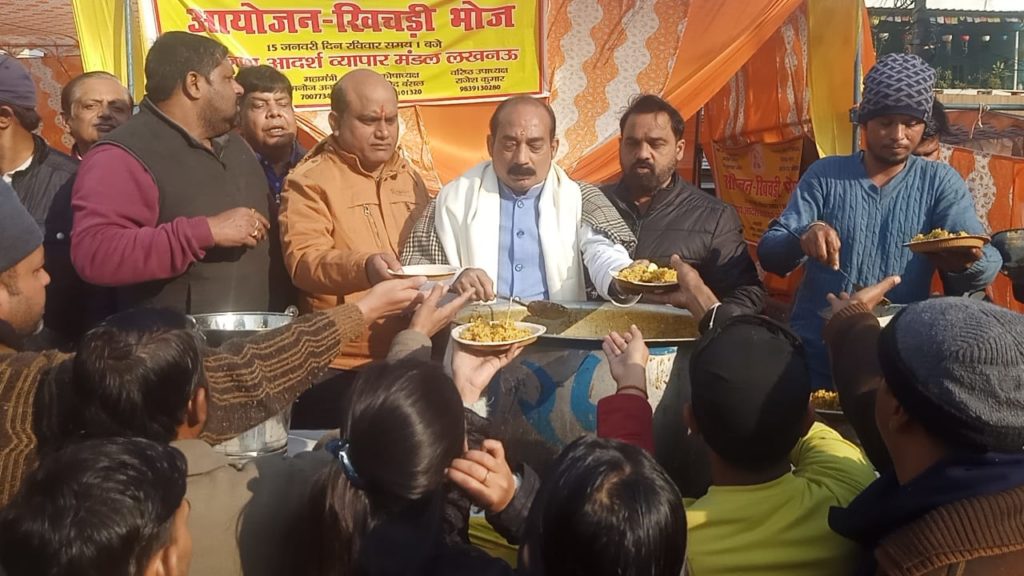 लखनऊ। उत्तर प्रदेश की राजधानी लखनऊ में रविवार को मकर संक्रांति के अवसर पर “उत्तर प्रदेश आदर्श व्यापार मंडल, भूतनाथ मार्केट” के तत्वाधान में भूतनाथ मार्केट में खिचड़ी भोज का आयोजन हुआ।