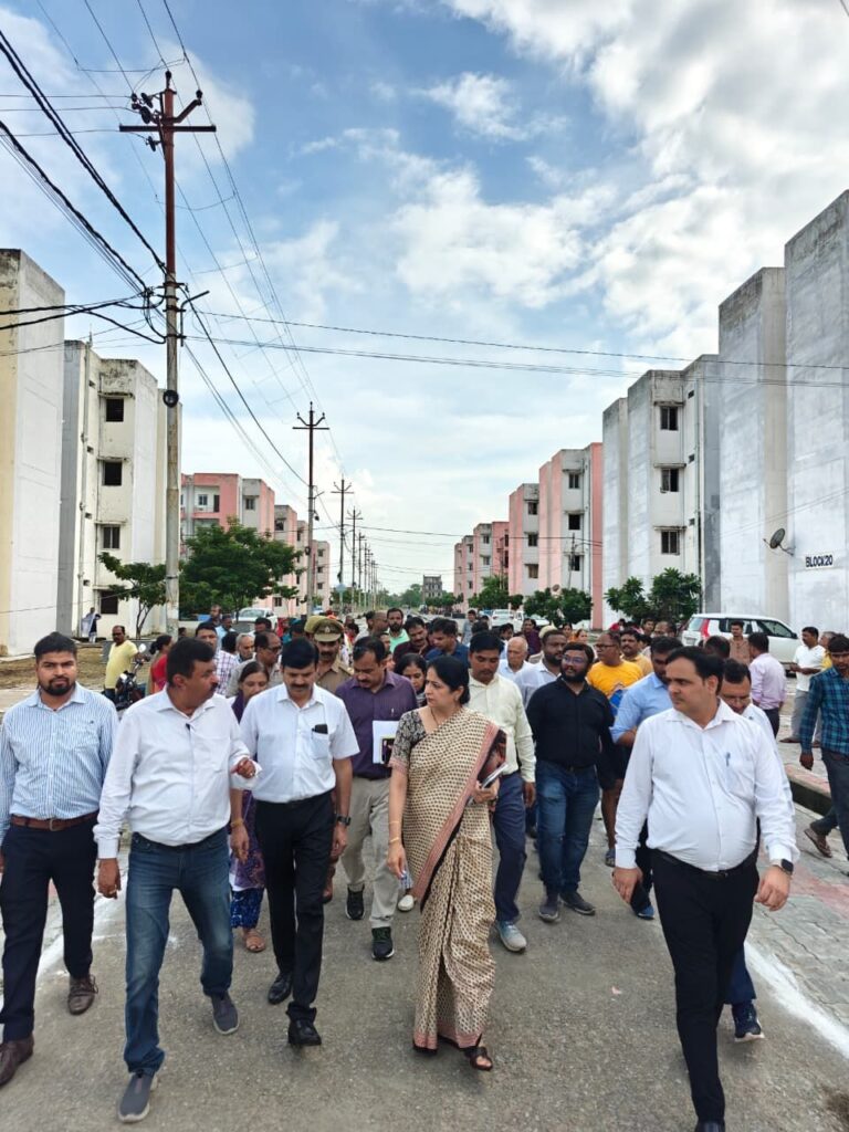 कार्यक्रम के अगले चरण में श्रीमती मनमीत कौर, निदेशक, पीएमओ, भारत सरकार ने प्रधानमंत्री आवास योजना-शहरी के घटक भागीदारी में किफायती आवास (एएचपी) के अंतर्गत सेक्टर 10-बी अवध विहार योजना में आवास विकास परिषद द्वारा निर्मित आवासों एवं शारदा नगर विस्तार में लखनऊ विकास प्राधिकरण द्वारा निर्मित आवासों का निरीक्षण किया। उक्त निरीक्षण कार्यक्रम में निदेशक पीएमओ ने लाभार्थियों से संवाद भी किया तथा उनके जीवन आए बदलावों के विषय में जानकारी भी ली। उक्त निरीक्षण कार्यक्रम में निदेशक सूडा अपूर्वा दुबे, सहायक निदेशक सूडा मोनिका वर्मा, परियोजना अधिकारी डूडा लखनऊ चंद्रकांत त्रिपाठी के साथ ही आवास विकास परिषद व लखनऊ प्राधिकरण के अधिकारी व कर्मचारी भी उपस्थित रहे।