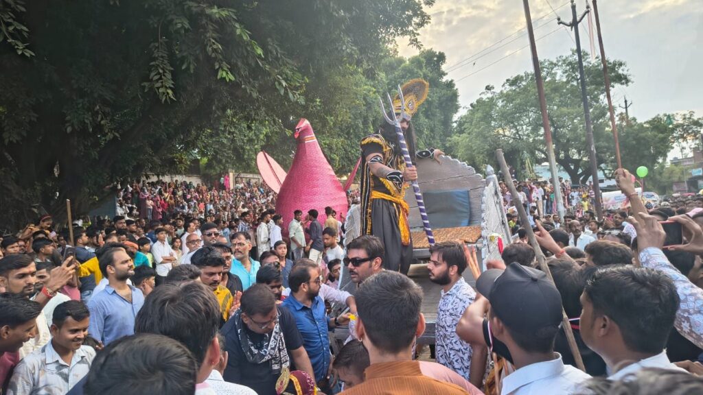 Konch / Jalaun news today । जालौन जनपद के कोंच नगर में रामलीला में मारीचवध और सीता हरण की लीलाओं का मंचन गढ़ी के मैदान में मेले के रूप में संपन्न हुआ। मेला देखने के लिए हजारों की भीड़ मेला ग्राउंड में जुटी थी।