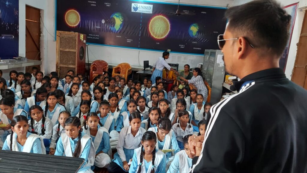 Auraiya news today । औरैया जनपद के दिबियापुर नगर स्थित जीजीआईसी इंटर कालेज में डेन्जर्स एडवेंचर्स अंतर्वेद स्पोर्ट्स लगिस्ट अवध बिहारी लाल ने टीम के सदस्य जितेंद्र प्रताप के साथ स्कूली छात्राओं को कन्या सुमंगला योजना एवं राष्ट्र हित में विद्युत की खपत कम करने, सौर ऊर्जा का इस्तेमाल करने, सड़क सुरक्षा, पर्यावरण संरक्षण विषयों पर जागरूक किया। एवम छात्राओ से संवाद भी किया।