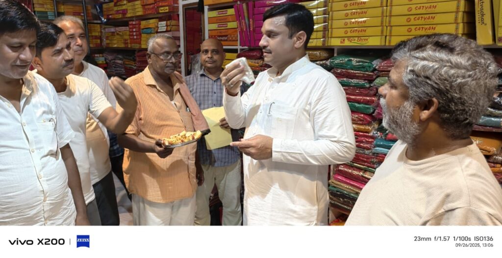 सांसद ने चलाया स्वदेशी और जीएसटी जागरुकता अभियान,हर घर स्वदेशी, घर – घर स्वदेशी का पम्पलेट लेकर दुकानों पर गये