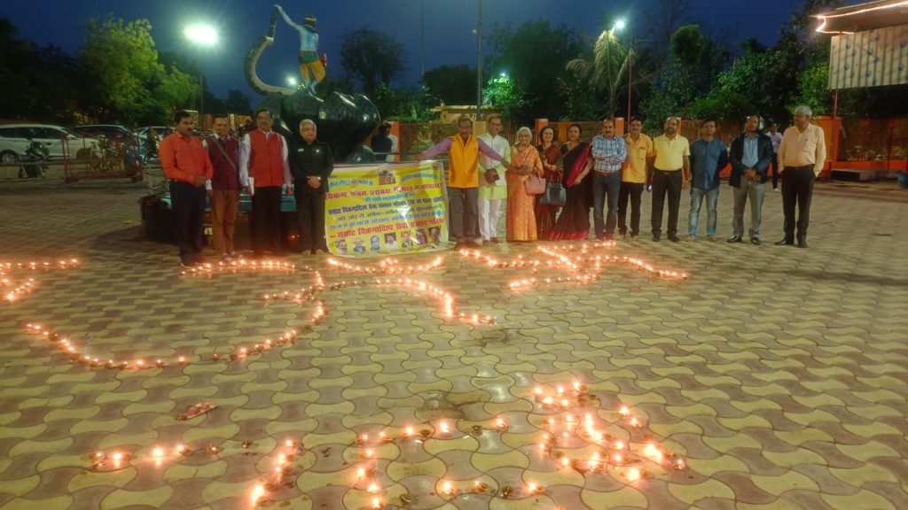 लखनऊ। विक्रम सम्वत् 2080 पिंगल नव सम्वत्सर की पूर्व संध्या पर नववर्ष चेतना समिति (भारत) द्वारा गोमती नदी स्थित खाटू श्याम जी मंदिर पर नववर्ष के स्वागत कार्यक्रम के क्रम में दीपोत्सव का आयोजन किया गया। दीपोत्सव के माध्यम से ओम और स्वास्तिक का चिन्ह बना कर हर्षोल्लास के साथ सभी सदस्यों ने मिलकर नववर्ष का स्वागत की तैयारियां की।