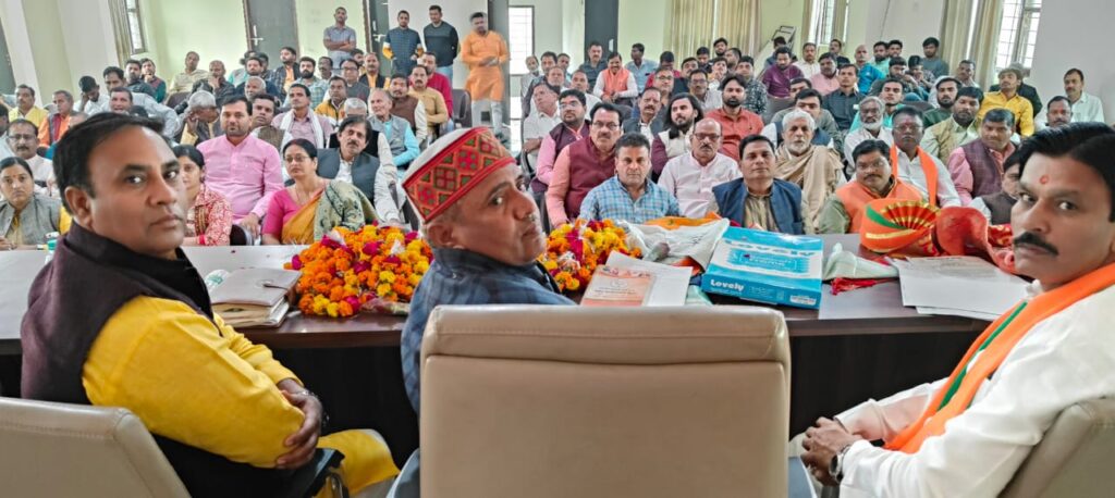 Auraiya news today । भाजपा जिला कार्यालय तुर्कीपुर में बुधवार को वोटर चेतना महाअभियान की जिला कार्यशाला में भाजपा के नवनियुक्त जिला प्रभारी आनंद सिंह ने कहा कि जो 18 वर्ष की आयु को पूर्ण कर चुके युवाओं, विवाह होने के बाद परिवर्तित निवास स्थान, बूथ से अन्यंत्र निवास करने वाले तथा बूथ पर नए आए मतदाताओं के नाम मतदाता सूची में जोड़ने या नाम कटने का कार्य तथा दिवंगत मतदाताओं के नाम मतदाता सूची से कटवाने का कार्य वोटर चेतना महाभियान के माध्यम से करना है। वही 28,29 नवंबर को युवा मोर्चा स्कूलों में, 30 नवम्बर व एक जनवरी को महिला मोर्चा व 28,29 नवंबर व एक दिसंबर को अनुसूचित एवं एससी प्रकोष्ठ के पदाधिकारी मतदाता बनवाने के लिए प्रेरित करेंगे। मेरा लक्ष्य मिशन 2024 लोकसभा चुनाव में इटावा ,कन्नौज लोकसभा क्षेत्र को फिर जीतने का है।
