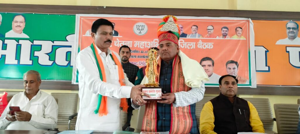 प्रचंड बहुमत से लोकसभा चुनाव जीतना है। इस दौरान भाजपा जिलाध्यक्ष भुवन प्रकाश गुप्ता ने नवनियुक्त जिला प्रभारी व जिला प्रवासी का चांदी का मुकुट ,शाल ,स्मृति चिह्न ,मालार्पण कर स्वागत किया।