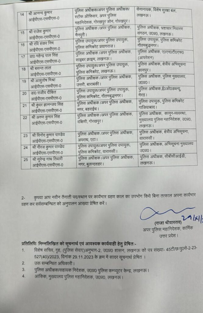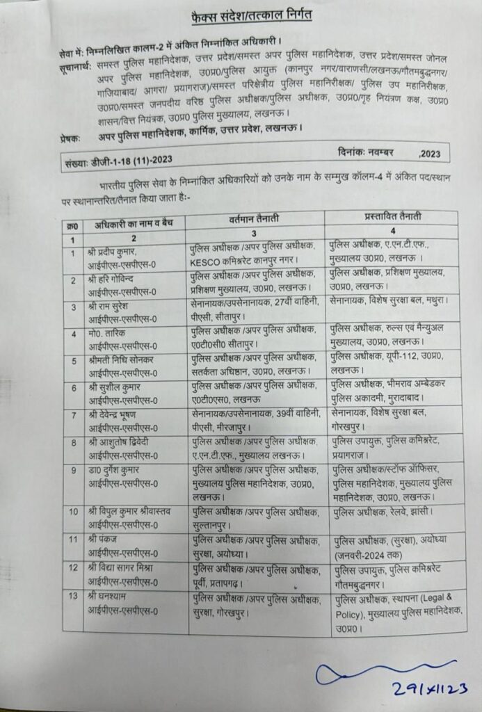 आज जिनकी जॉइनिंग हुई है। उनमें अभी तक कानपुर केस्को में अपर पुलिस अधीक्षक रहे प्रदीप कुमार को एएनटीएफ में पुलिस अधीक्षक बनाया गया है हरि गोविंद को पुलिस अधीक्षक प्रशिक्षण मुख्यालय बनाया गया है अभी तक यह इसी जगह पर अपर पुलिस अधीक्षक के पद पर तैनात थे । 27वीं वाहिनी पीएसी सीतापुर में उपसेना नायक सेनानायक रहे राम सुरेश सेनानायक विशेष सुरक्षा बल बनाया गया है। मोहम्मद तारिक को अपर पुलिस अधीक्षक एटीसी सीतापुर से पुलिस अधीक्षक रूल्स एंड मैन्युअल मुख्यालय लखनऊ बनाया गया है निधि सोनकर को पुलिस अधीक्षक 112 बनाया गया है सुशील कुमार को मुरादाबाद में पुलिस अधीक्षक भीमराव अंबेडकर पुलिस अकादमी बनाकर भेजा गया है दुर्गेश कुमार को डीजीपी का स्टाफ ऑफिसर पुलिस अधीक्षक बनाया गया है । इसके अलावा और जिनको नई तैनाती मिली है देखिए पूरी लिस्ट