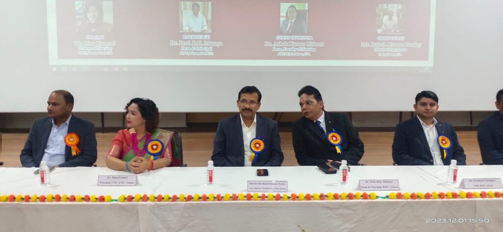 जिलाधिकारी, स्टॉफ नर्सिंग, गणमान्य इत्यादि लोगों को, डॉ० रीना कुमारी द्वारा मोमेंटो देकर सम्मानित किया गया । कार्यक्रम का संचालन सह आचार्य नेहा सिंह, कॉलेज ऑफ नर्सिंग भानु शर्मा के द्वारा योगदान किया गया । निशा दुवे कार्यवाहक मेट्रन व श्रीमती स्वाति पटनवाल ने धन्याबाद दिया । कार्यक्रम में डॉ शैलेन्द्र प्रताप (नोडल ऑफिसर ) डॉ आलोक, डॉ चरक सांगवान, डॉ जितेंद्र मिश्रा, श्रेया शर्मा, माया जोशी, आकाश पाल, भावना सक्सेना, मृदुल सचान,ओमप्रकाश शर्मा, दीपक गेहलोत, ट्यूटर, कॉलेज ऑफ नर्सिंग इत्यादि उपस्थित रहे ।