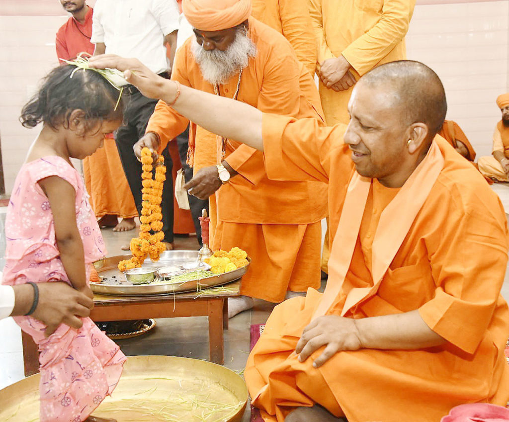 उसके बाद सीएम योगी ने कन्या पूजन का पारंपरिक अनुष्ठानकिया, जिसमें मुख्यमंत्री ने नौ कन्याओं और एक बटुक भैरव का पहले थाल में पांव पखारा और विधि-विधान से उनकी पूजा की। पूजा के क्रम में ही मुख्यमंत्री कन्याओं को अपने हाथों से भोजन भी कराया और भोजन कराने के बाद कन्याओं को दक्षिणा और उपहार भी दिया।
