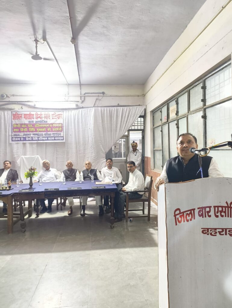 बहराइच। स्थानीय दीवानी न्यायालय परिसर में विधि पुस्तकों, वाद पत्रों, परिवाद पत्रों व निर्णयों की प्रदर्शनी लगाई गई। प्रदर्शनी का उद्घाटन जनपद न्यायाधीश सतेंद्र कुमार ने फीता काटकर किया। सभी न्यायिक अधिकारियों व अधिवक्ताओं ने घूम घूमकर प्रदर्शनी का अवलोकन किया। प्रदर्शनी में न्यायिक अधिकारियों, बार ऐसोसिएशन एवं हिंदी विधि प्रतिष्ठान के सामूहिक सहयोग से तमाम विधि पुस्तकों विशेष वाद पत्रों एवं विशेष निर्णयों को इकठ्ठा कर प्रदर्शित किया गया। कार्यक्रम का संचालन महामंत्री कर्मवीर सिंह ने किया एवं आज की व्यवस्था वरिष्ठ अधिवक्ता विनय सिंह पम्मू एवं बृजेंद्र सिंह ने किया। मुख्य अतिथि जनपद न्यायाधीश सतेंद्र कुमार ने कहा कि भाषा में नम्रता होनी चाहिए जो हिंदी भाषा में पूर्णत परिलक्षित है। हम मां भारती के पुत्र है और हिंदी की सेवा करके हम मातृ ऋण से मुक्त हो। अधिवक्ता अनूप श्रीवास्तव ने कहा कि शंकर के डमरू से उत्पन्न संस्कृत भाषा के मूल तत्वों से उपजी हिंदी हमारी संस्कृति का द्योतक है। अधिवक्ता संजय तिवारी के कहा कि दूसरे की भाषा जानना सम्मान की बात है किंतु अपनी भाषा की अज्ञानता निराश होने की बात है । अधिवक्ता हरीश शर्मा ने कहा कि शिकागो में विवेकानंद और संयुक्त राष्ट्र संघ में अटल बिहारी बाजपेई जी ने हिंदी की धाक जमाई। अपर जनपद न्यायाधीश राकेश प्रताप सिंह ने कहा कि 1956 में भाषा के आधार पर राज्यों के पुनर्गठन के समय हमारा उद्देश्य किसी प्रकार की ईर्ष्या नहीं बल्कि भाषाओं में स्पर्धा से था। जनपद अधिवक्ता संघ के अध्यक्ष राम जी बाजपेई ने कहा कि कुंभ के महाआयोजन से हमारी भाषा का प्रचार प्रसार पूरी दुनिया में हुआ। मीडिया प्रभारी अनिल त्रिपाठी ने बताया कि न्यायिक अधिकारियों एवं अधिवक्ताओं की विधि शब्दावली प्रतियोगिता आयोजित की जाएगी। अंत में संस्थान के अध्यक्ष राम छबीले शुक्ला ने सभी के प्रति आभार व्यक्त किया। और निबंध का विषय विधि के क्षेत्र में हिंदी भाषा का योगदान की घोषणा की। कार्यक्रम में मुख्य रूप से अपर जनपद न्यायाधीश पवन शर्मा,अनिल कुमार, आनंद शुक्ल, अरविंद गौतम, प्रतिभा चौधरी, तूबा फातिमा, शिवाली मिश्रा, रूपाली तिवारी , गया प्रसाद मिश्रा, विजय पाठक, पंकज मिश्रा, दिनेश तिवारी, शिवेंद्र सिंह, अभिषेक प्रताप सिंह, राम सूरत वर्मा, काशी नाथ शुक्ल, श्रीनिवास तिवारी सहित तमाम हिन्दी प्रेमी मौजूद थे।