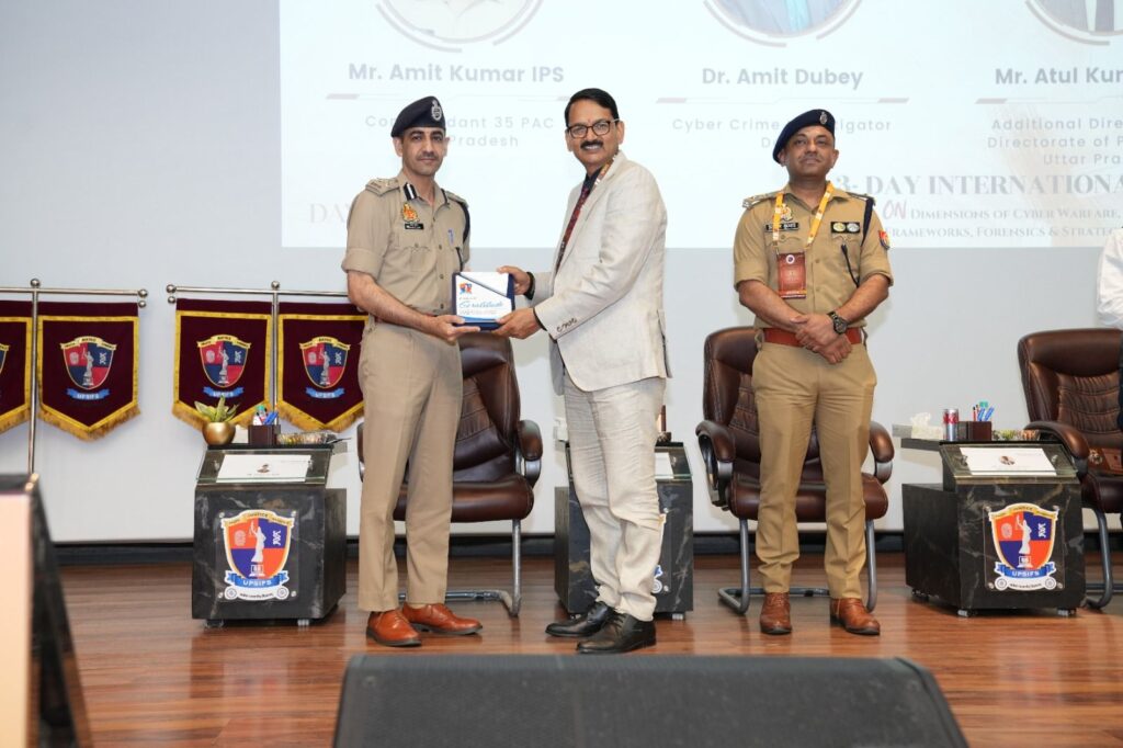 इस अवसर पर पुलिस उप महानिरीक्षक साइबर उ0प्र0 श्री पवन कुमार ने कहा कि किसी भी अपराध से निपटने का पहला और सबसे महत्वपूर्ण कदम उसे स्वीकारना और उसके अस्तित्व को समझना है। भारत समेत विश्व में साइबर अपराध का स्तर चिंताजनक रूप से बढ़ गया है, वैश्विक साइबर अपराध से होने वाले नुकसान की राशि 11 ट्रिलियन डॉलर से अधिक है, जो भारत की पूरी अर्थव्यवस्था से तीन गुना अधिक है। भारत में अब तक 60 लाख से अधिक साइबर अपराध दर्ज हो चुके हैं, जो इस खतरे की गंभीरता को दर्शाता है। उन्होंने कहा कि साइबर अपराध से मुकाबला केवल पुलिस का काम नहीं है, बल्कि बैंकिंग, शिक्षा और तकनीक समेत सभी क्षेत्रों का समन्वित प्रयास चाहिए। इस सहयोग से ही भारत साइबर अपराध को प्रभावी ढंग से कम कर सकता है।