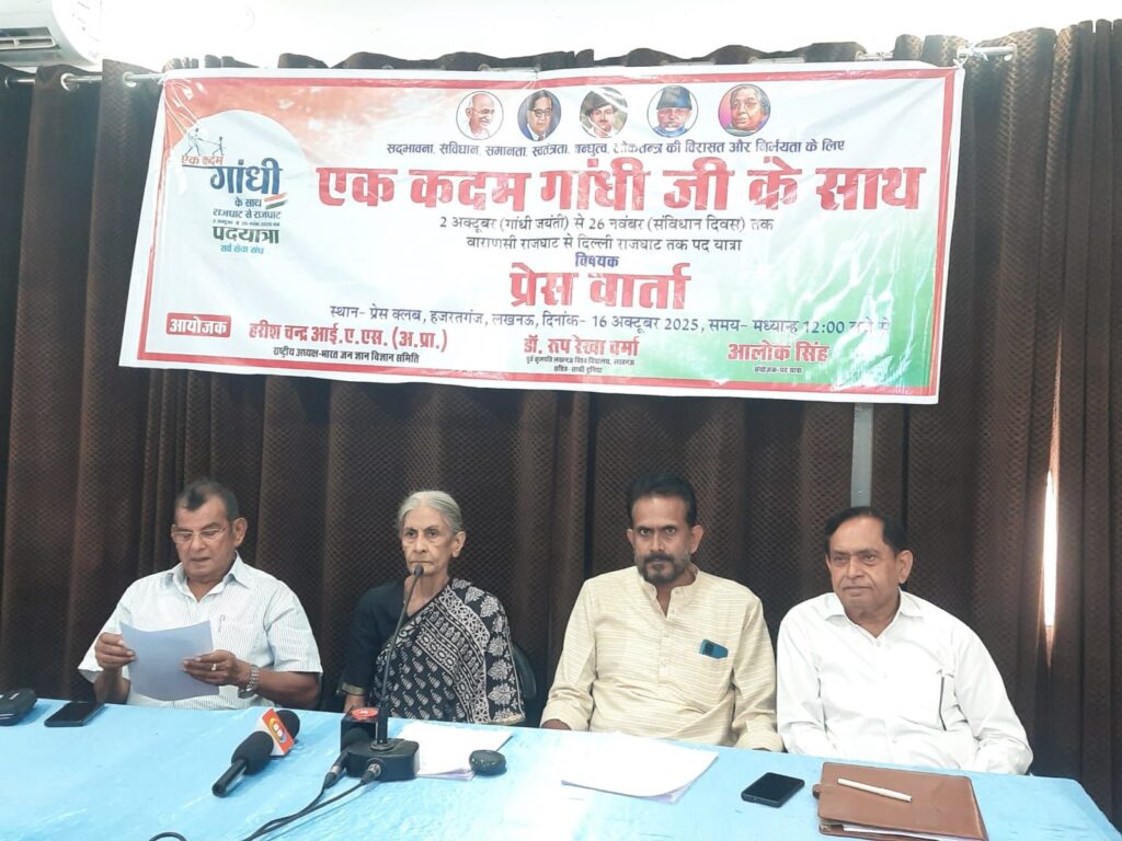 उन्होंने कहा कि हमने अपने मुल्क की इसी विरासत को सजोये रखने के लिए “एक कदम गाँधी के साथ” पदयात्रा की शुरुआत 2 अक्टूबर को वाराणसी के राजघाट से की है। इस एक हजार किलोमीटर लम्बी पदयात्रा में पदयात्त्रि 110 पड़ाव डालेंगे एवं 56 दिन तक चलते रहेंगे। यह ऐतिहासिक पदयात्रा 18 जिलों 3 राज्यों के सैकडों स्कूल, कालेजों, गाँवों, कस्बों, बाजारों, शहरों से होकर गुजरेगी।