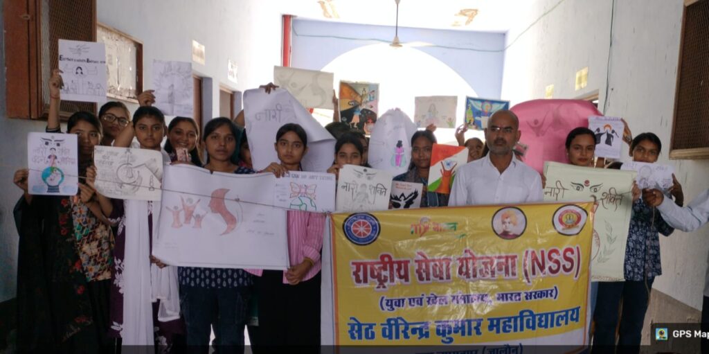 Jalaun news today । जालौन के सेठ वीरेंद्र कुमार महाविद्यालय में नारी शक्ति वंदन अधिनियम के समर्थन में चित्रकला प्रतियोगिता का आयोजन किया गया। प्रतियोगिता के माध्यम से छात्राओं ने पेंटिंग बनाकर महिलाओं की भागीदारी, समान अधिकार और सशक्तिकरण से जुड़े संदेश प्रस्तुत किए।