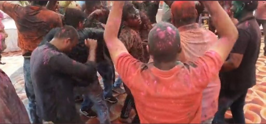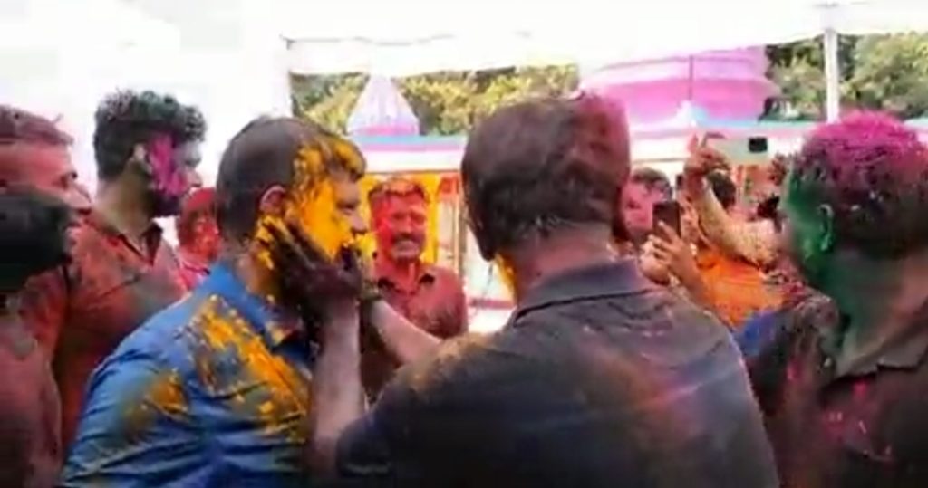 पुलिस लाइन में पुलिसकर्मियों ने मनाई होली,,, पुलिस कमिश्नर व डीएम भी रहे मौजूद,, एक दूसरे को रंग लगाकर दी बधाई