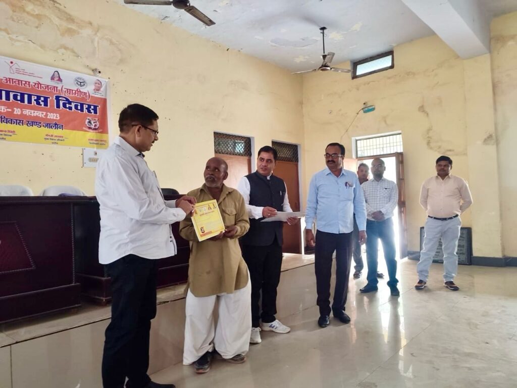 Jalaun news today । प्रधानमंत्री आवास योजना के अंतर्गत बिना किसी भेदभाव अथवा बिचौलिए की मध्यस्थ्ता के पात्र व्यक्तियों को आवास की धनराशि स्थानांतरित की जा रही है। प्रत्येक पात्र व्यक्ति सरकार की योजनाओं का लाभ ले सकता है। यह बात आवास दिवस के अवसर पर परियोजना निदेशक ने लाभार्थियों को प्रमाण पत्र वितरित करते हुए कही।