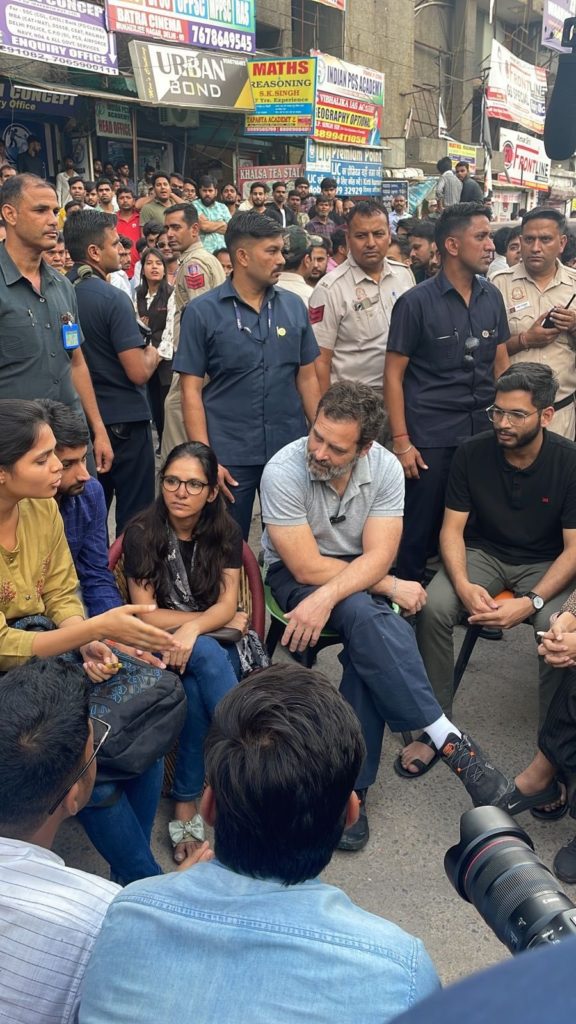 कांग्रेस नेता राहुल गांधी ने आज दिल्ली के मुखर्जी नगर में पहुंच कर यहां प्रतियोगिताओं की तैयारी कर रहे छात्रों से उन्होंने बात की और उनसे उनकी तैयारी के बारे में विस्तार से जानकारी ली और उन्हें हर सम्भव मदद का आश्वासन भी दिया।