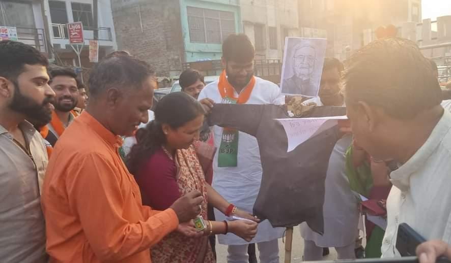 पुतला फूंकने के दौरान महिला मोर्चा की प्रदेश अध्यक्ष एवं राज्यसभा सांसद गीता शाक्य ने बताया कि मंगलवार को बिहार के मुख्यमंत्री नीतीश कुमार द्वारा बिहार विधानसभा के अन्दर महिलाओं के प्रति जो अशोभनीय भाषा व टिप्पणी की उससे पूरे देश की महिलाओं को अपमानित करने का काम किया गया है जिससे देश की महिलाओं को बहुत कष्ट हुआ है। जिससे प्रदेश व देश की महिलाओं में आक्रोश पनप गया है। कहा कि प्रदेश के साथ देश की महिलाएं बिहार के मुख्यमंत्री नितीश कुमार को समय आने पर सबक जरूर सिखायेगी।