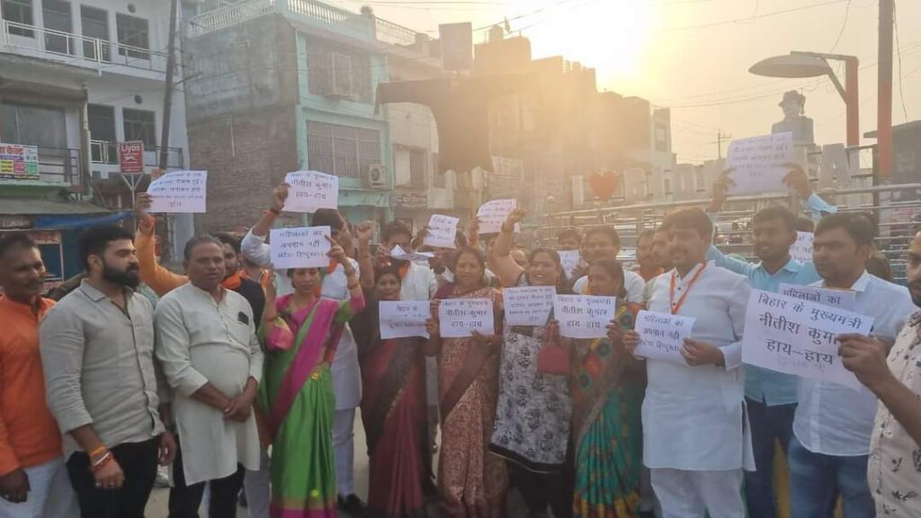 देश भर में भाजपा की महिला पदाधिकारी व कार्यकर्ता इस की निंदा करते है। और मांग करते हैं कि वह शीघ्र ही देश की महिलाओं से माफी मांगे। इससे पूर्व भाजपा महिला मोर्चा की पदाधिकारी व कार्यकर्ता राज्यसभा सांसद गीता शाक्य नेतृत्व में नितीश कुमार का पुतला लेकर नारेबाजी करते हुए नगर के भगत सिंह चौराहे पर पहुंचे। जहां पर उन्होंने बिहार के सीएम नितीश कुमार का पुतला फूका।