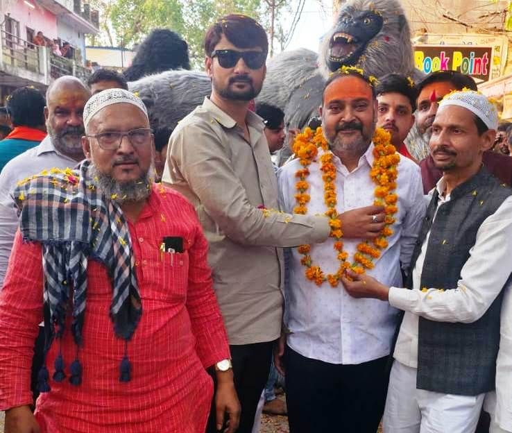 दिखी गंगा जमुनी तहजीब, मुस्लिम समाज के लोगों ने की पुष्प वर्षा