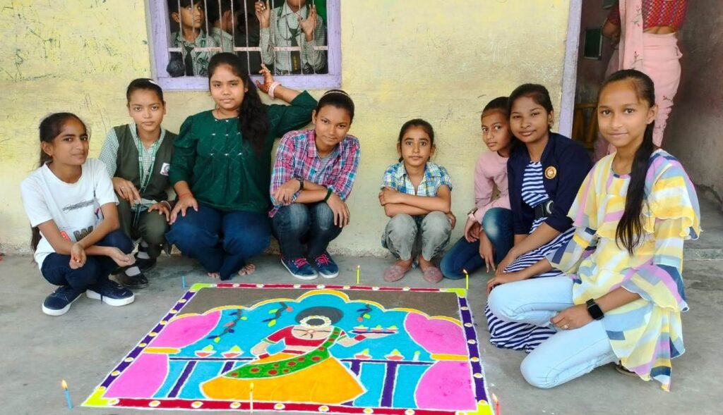 Jalaun news today । जालौन नगर में दीपावली की छुट्टी से पूर्व नगर के स्कूलों में रंगोली प्रतियोगिताओं का आयोजन किया गया। बच्चों ने अकर्षक रंगोली की डिजायनें सजाकर दीपावली की शुभकामनाएं दीं।