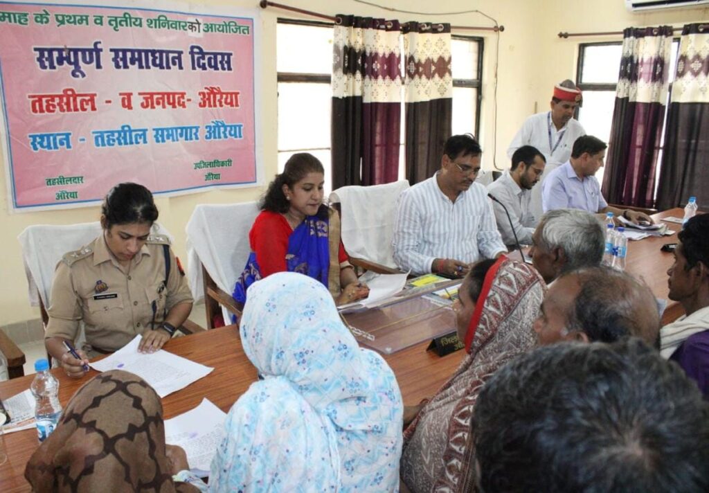 Auraiya news today । सम्पूर्ण समाधान दिवस में प्राप्त होने वाले आमजन के शिकायती प्रार्थना पत्रों का संबंधित अधिकारी समयबद्धता के साथ स्थलीय निरीक्षण करते हुए संबंधित समस्या का निराकरण विभागीय अधिकारी/ अधिकारी आपसी टीम बनाकर नियमानुसार करना सुनिश्चित करें जिससे शिकायतकर्ता को पुनः उसी शिकायत के लिए परेशान न होना पड़े। निस्तारण की कार्यवाही से संबंधित शिकायतकर्ता को मोबाइल से अवगत भी कराये। जिलाधिकारी नेहा प्रकाश ने उपरोक्त निर्देश सदर तहसील औरैया के सभागार में आयोजित संपूर्ण समाधान दिवस में समस्या संबंधी आवेदन पत्र लेकर आए फरियादियों की समस्याओं को सुनने के उपरांत संबंधित अधिकारियों को दिये।