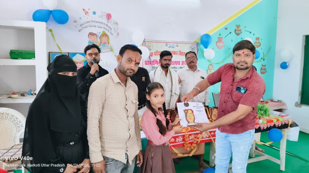 Jalaun news today ।जालौन ब्लॉक क्षेत्र के प्राथमिक विद्यालय हरकौती में स्कूल चलो अभियान को उत्सव के रूप में धूमधाम से मनाया गया। इस अवसर पर विद्यालय परिसर को स्वच्छ एवं सुंदर बनाकर सजाया गया और बच्चों का फूल-माला, टीका और चंदन लगाकर स्वागत किया गया।