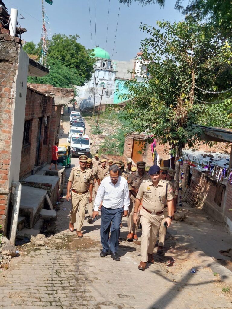 Jalaun / kalpi news today । जालौन जनपद के कालपी में शुक्रवार को जुमे की नमाज और निकट में लगी नवरात्रि पर्व को लेकर पूरे शहर में एसडीएम कालपी तथा क्षेत्राधिकारी ने भारी पुलिस फोर्स के साथ पैदल भ्रमण किया और सुरक्षा व्यवस्था का जायजा लिया।