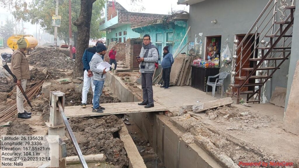 Jalaun news today ।जालौन नगर पालिका परिषद द्वारा चुर्खी रोड पर नाले का निर्माण कराया जा रहा है। नाले निर्माण में हो रही देरी व लोगों की परेशानियों को देखते हुए एसडीएम ने मौके पर पहुंच निर्माण को देखा और ठेकेदार को निर्माण में तेजी लाने व गुणवत्ता का ध्यान रखने के निर्देश दिए हैं।