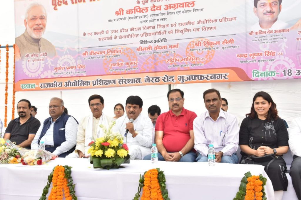 मुजफ्फरनगर । उत्तर प्रदेश के कौशल विकास मंत्री कपिल देव ने यूपी के मुजफ्फरनगर जनपद में आज ‘वृहद रोजगार मेला’ का शुभारंभ कर प्रशिक्षणार्थियों को नियुक्ति-पत्र वितरित किये और उन्होंने एवं प्रशिक्षणार्थियों को बधाई दी। इस अवसर पर स्वतंत्र प्रभार मंत्री श्री अग्रवाल ने सभा को संबोधित करते हुए कहा कि प्रधानमंत्री एवं मुख्यमंत्री के सपनों को साकार करने के लिए व्यावसायिक शिक्षा एवं कौशल विकास, युवाओं को तकनीकी प्रशिक्षण प्रदान करते हुए उन्हे आत्मनिर्भर तथा रोजगार से जोड़ने का कार्य कर रहा हैं तकनीकि प्रशिक्षण प्राप्त युवाओं को रोजगार के अवसर मिले इसके लिए सभी जनपदों की आईटीआई में नियमित रूप से रोजगार मेले, अप्रेंटिंस मेला, प्लेसमेंट डे आदि आयोजित किये जा रहे है।