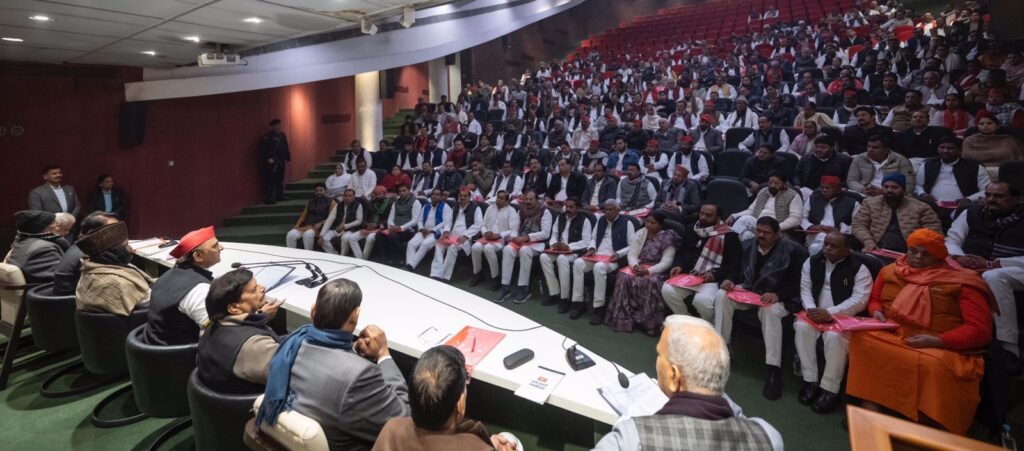 अखिलेश यादव समाजवादी पार्टी के राज्य मुख्यालय में हुई बैठक में आज विधायकों एवं पूर्व प्रत्याशियों को सम्बोधित कर रहे थे। उन्होंने कहा कि लोकसभा चुनाव में हर स्तर पर सतर्क और सावधान रहना है। 2022 के विधानसभा चुनाव में जनता ने समाजवादी सरकार बनाना तय कर लिया था परन्तु भाजपा ने सत्ता का दुरुपयोग कर लोकतंत्र के निर्णय को प्रभावित करने का काम किया। लेकिन अब पीडीए-इंडिया गठबंधन भाजपा और एनडीए का उत्तर प्रदेश में सफाया करके ही दम लेगा। हमारे सामने चुनौती है पर समाधान का रास्ता इसी से निकलेगा। इस बार पहले से ज्यादा वोट से हमारे प्रत्याशियों की जीत सुनिश्चित रहेगी। श्री यादव ने कहा कि भाजपा के दस वर्ष विफलता के रहे हैं। भाजपा सरकार ने आर्थिक संकट पैदा किया है। महंगाई चरम पर है। भ्रष्टाचार और कालाधन नोटबंदी के बाद भी बढ़ा है। बेरोजगारी की दर में लगातार वृद्धि क्यों हो रही है? महिलाओं और बच्चियों के उत्पीड़न में उत्तर प्रदेश एनसीआरबी के आंकड़ों में अव्वल है। हिरासत में मौतों का सिलसिल थमा नहीं है। भाजपा सरकार में एक लाख किसान आत्महत्या कर चुके हैं।