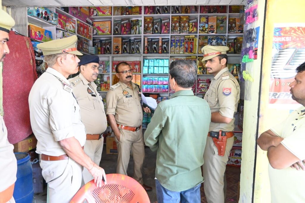 Orai / jalaun news today। दशहरा और दीपावली के त्यौहार को देखते हुए आतिशबाजी निर्माण की पुलिस द्वारा कड़ी निगहबानी की जा रही है। पुलिस अधीक्षक डा. दुर्गेश कुमार ने बताया कि इस दौरान उन्होंने कालपी कस्बे में आतिशबाजी की कई दुकानों का निरीक्षण किया। इसमें उन्होंने अभिलेख जांचे तांकि लाइसेंस में निर्धारित सीमा से अधिक बारूद भण्डारण न हो सके।