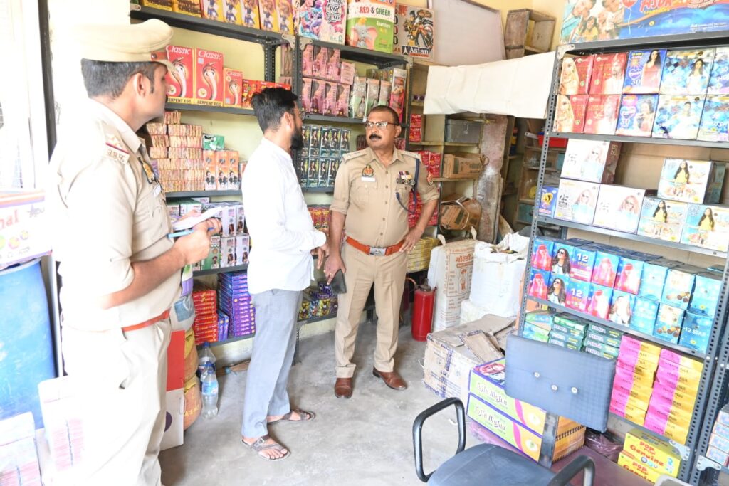 Orai / jalaun news today। दशहरा और दीपावली के त्यौहार को देखते हुए आतिशबाजी निर्माण की पुलिस द्वारा कड़ी निगहबानी की जा रही है। पुलिस अधीक्षक डा. दुर्गेश कुमार ने बताया कि इस दौरान उन्होंने कालपी कस्बे में आतिशबाजी की कई दुकानों का निरीक्षण किया। इसमें उन्होंने अभिलेख जांचे तांकि लाइसेंस में निर्धारित सीमा से अधिक बारूद भण्डारण न हो सके।