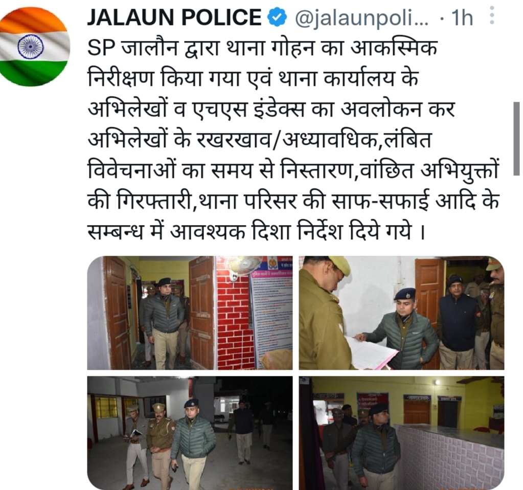 जिले की कानून व्यवस्था को दुरुस्त करने के लिए एसपी जालौन कर रहे हर सम्भव प्रयास,,,इस थाने का किया औचक निरीक्षण,, जारी किए ये निर्देश