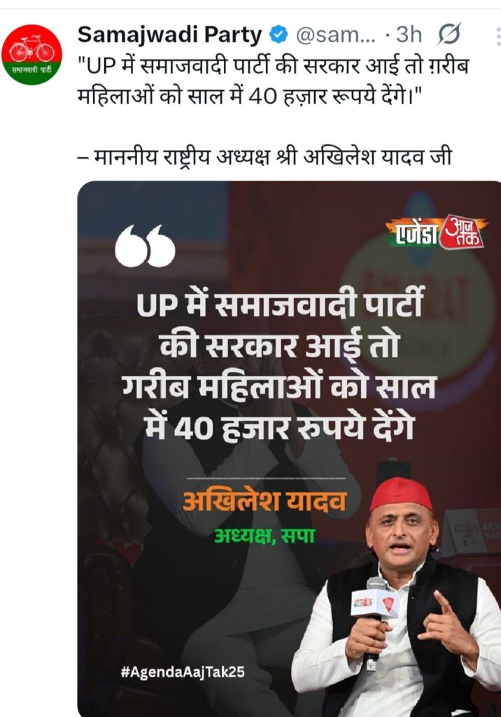 Akhilesh yadav । समाजवादी पार्टी के राष्ट्रीय अध्यक्ष अखिलेश यादव ने सपा सरकार बनने पर एक बड़ा ऐलान किया है। उन्होंने कहा कि यूपी में अगर समाजवादी पार्टी की सरकार आई तो वह गरीब महिलाओं को 40000 रुपए सालाना आर्थिक मदद देंगे। दरअसल सपा मुखिया अखिलेश यादव एक टीवी चैनल में हुई डिबेट में बोल रहे थे जहां पर उन्होंने ऐलान किया