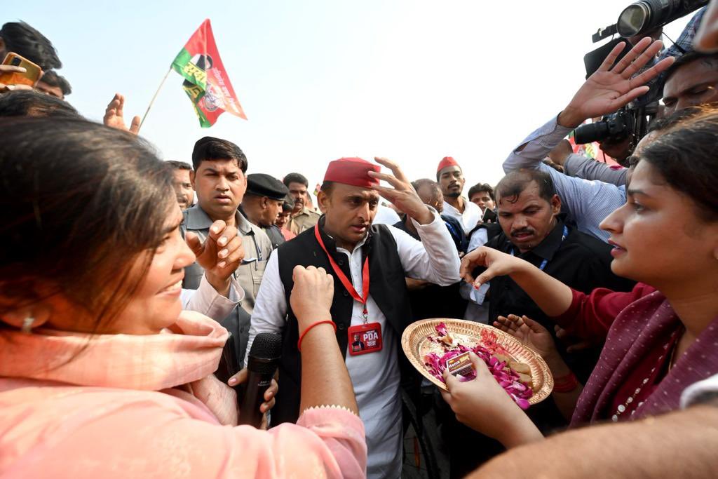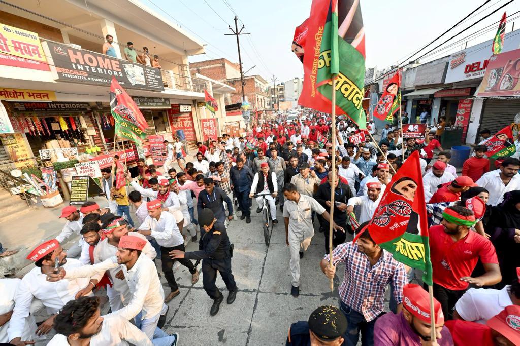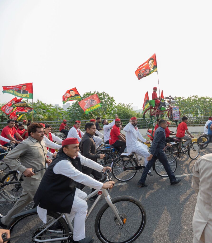 UP news today । समाजवादी पार्टी के राष्ट्रीय अध्यक्ष एवं पूर्व मुख्यमंत्री अखिलेश यादव सोमवार को समाजवादी पीडीए साइकिल यात्रा में पूर्वांचल एक्सप्रेस-वे से चांद सराय खुर्दही बाजार कबीरपुर होते हुए किसान पथ, कैंसर अस्पताल, अमूल प्लांट, पराग दुग्ध प्लांट, संस्कृति स्कूल, मातृ शिशु कल्याण केन्द्र, एच.सी.एल. मुख्य गेट, प्लासियों मॉल, इकॉना क्रिकेट स्टेडियम होते हुए पुलिस मुख्यालय के सामने से गोमतीनदी बंधा मार्ग, राप्ती अपार्टमेंट, डीपीएस स्कूल, जनेश्वर मिश्र पार्क के गेट नं0 7 से होते हुए लक्ष्मी मार्केट की तरफ से जनेश्वर मिश्र पार्क में शामिल हुए।