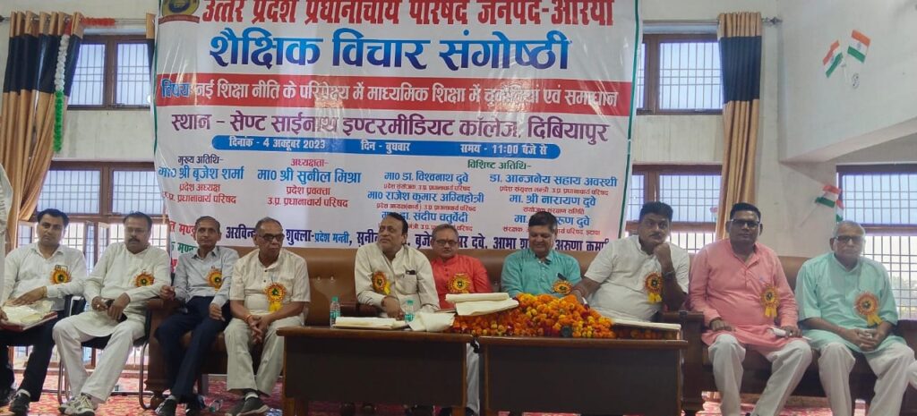 Auraiya news today । उत्तर प्रदेश प्रधानाचार्य परिषद औरैया के तत्वाधान में आयोजित जिला स्तरीय शैक्षिक संगोष्ठी नगर के सेंट साई नाथ इंटर कालेज में सम्पन्न हुई । उक्त शैक्षिक संगोष्ठी पर प्रधानाचार्य परिषद अध्यक्ष बृजेश शर्मा, विशिष्ट अतिथि परिषद के प्रांतीय अध्यक्ष (कार्यकारी) राजेश कुमार अग्निहोत्री,संगठन महामंत्री डा. जितेंन्द्र पटेल, संगठन मंत्री संदीप चतुर्वेदी,श्री नारायण दुबे संयोजक संरक्षण समिति तथा अरुण दुबे, संरक्षक प्रधानाचार्य परिषद इटावा आदि ने अपने विचार व्यक्त किये। संगोष्ठी की अध्यक्षता विश्वनाथ दुबे, प्रदेश संयोजक उ. प्र. प्रधानाचार्य परिषद ने की।