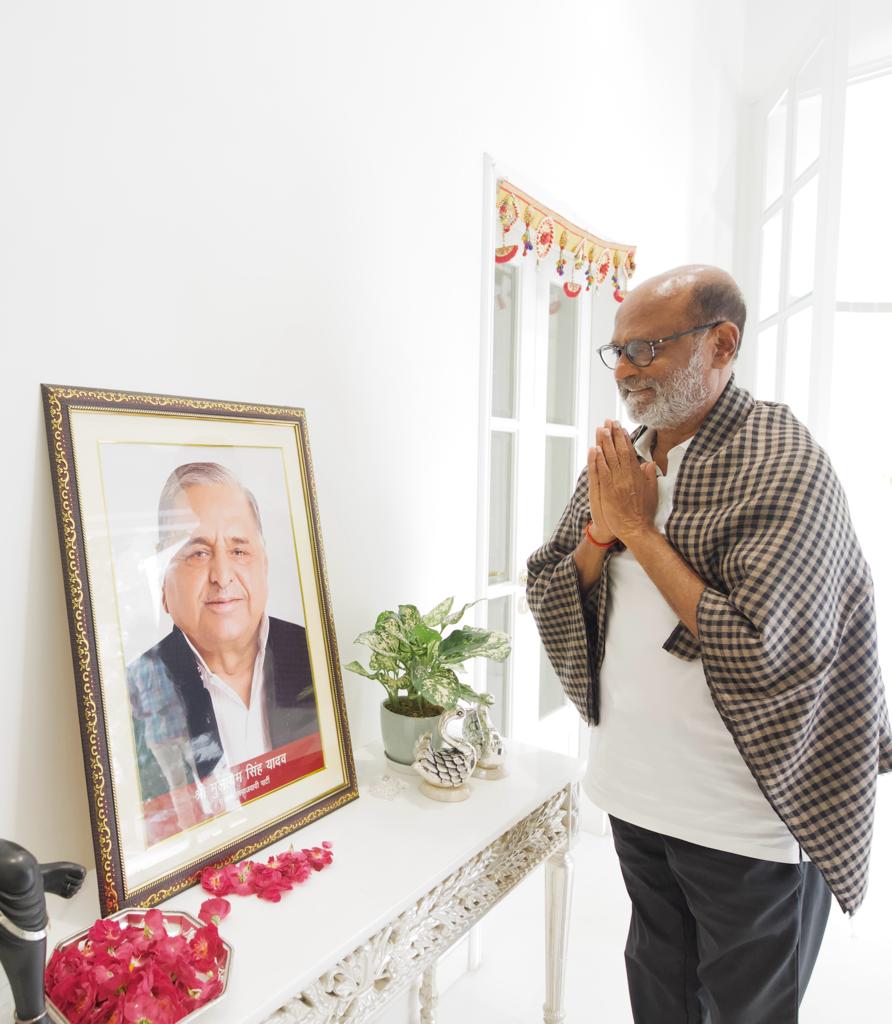 राजधानी लखनऊ स्थित सपा मुख्यालय पहुंचे सुपरस्टार रजनीकांत ने सपा संरक्षक मुलायम सिंह यादव के चित्र पर पुष्पांजलि अर्पित कर उन्हें श्रद्धांजलि अर्पित की ।