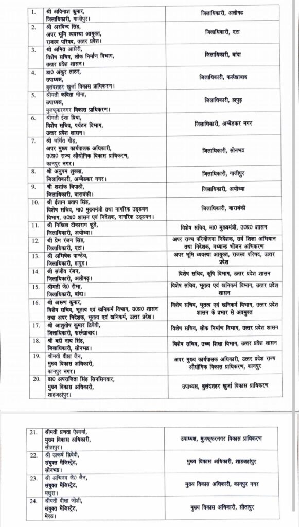 अविनाश कुमार → जिलाधिकारी, अलीगढ़ अरविंद सिंह* → जिलाधिकारी, एटा
