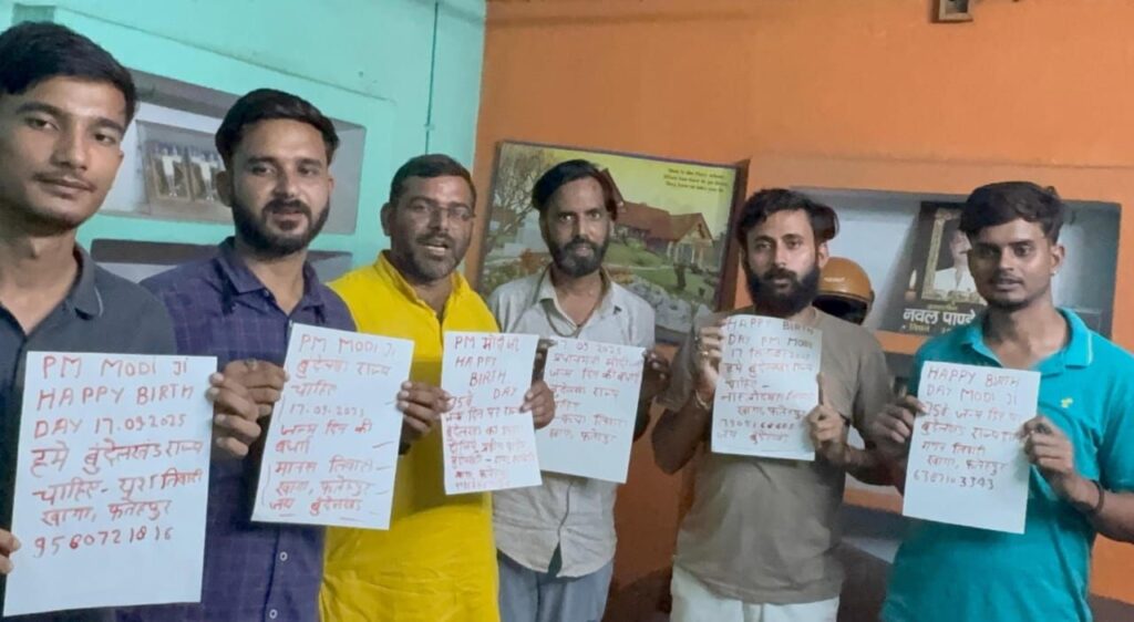 Fatehpur khaga news today । बुंदेलखंड राज्य की मांग को लेकर आंदोलन लगातार तेज़ हो रहा है। बुधवार को खागा नगर में बुंदेलखंड राष्ट्र समिति के कार्यकर्ताओं ने प्रधानमंत्री नरेन्द्र मोदी को 42वीं बार खून से खत लिखकर अलग राज्य की मांग उठाई।