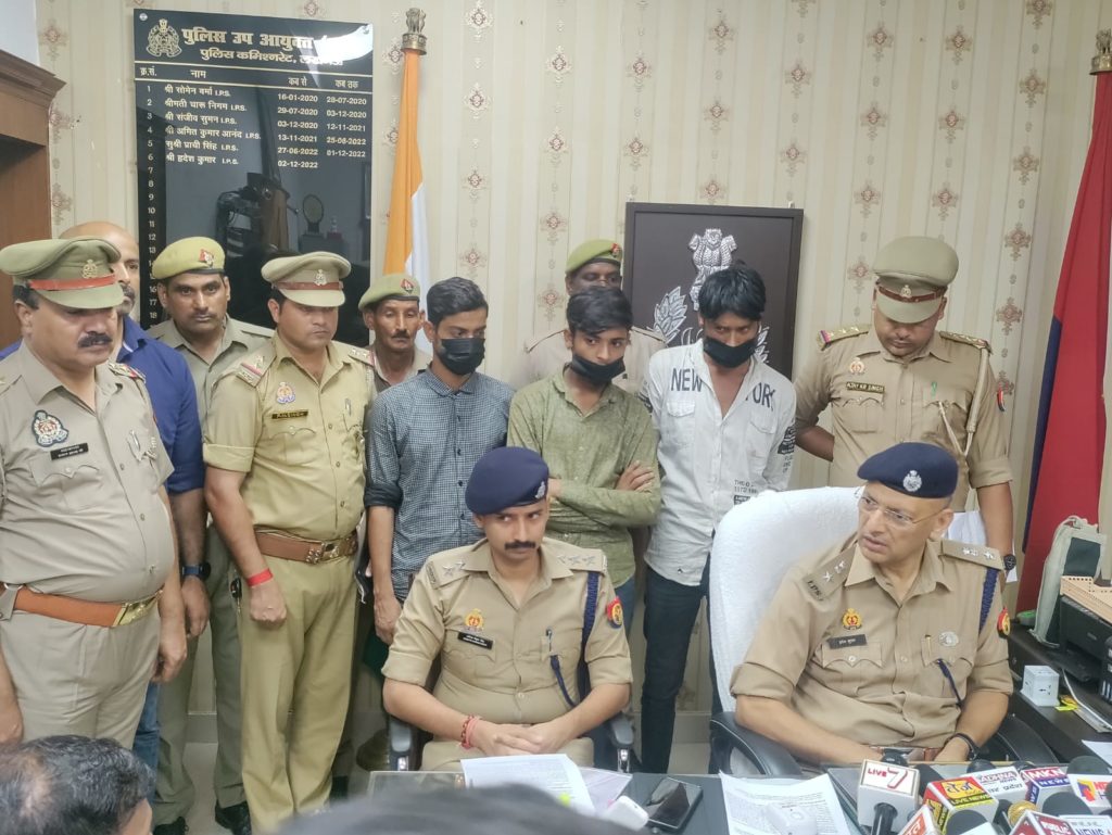 लखनऊ के बीबीडी थाना क्षेत्र में हुई घटना का खुलासे के सम्बंध में डीसीपी पूर्वी ने पूरे मामले की विस्तार से जानकारी दी । उन्होंने बताया कि 26 जून को बीबीडी थाना क्षेत्र में 3 बदमाशों द्वारा चोरी की घटना को अंजाम दिया जा रहा था उसी समय वहां से एक युवक निकल पड़ा इस पर वहां चोरी कर रहे बदमाशों ने युवक को गोली मार दी जिससे युवक घायल हो गया था। बदमाश फरार हो गए थे इस संबंध में बीबीडी थाने पर मामला दर्ज कराया गया । बदमाशों को पकड़ने के लिए कई टीमों को लगाया गया और अन्य माध्यमों का भी सहारा लिया गया। इसी आधार पर आज उस घटना को अंजाम देने वाले तीन शातिर बदमाशों को गिरफ्तार करने में कामयाबी हासिल हुई है। डीसीपी पूर्वी ने बताया कि पकड़े गए बदमाशों की गैंग का मुखिया सलमान है इसके खिलाफ 33 मामले दर्ज हैं और यह बहुत शातिर है इसके अलावा दो अन्य पकड़े गए हैं । उन्होंने बताया कि पकड़े गए तीनों अभियुक्तों के कब्जे से चोरी की दो मोटरसाइकिल , दो तमंचे चोरी करने वाला नकब का सामान भी बरामद हुआ है।