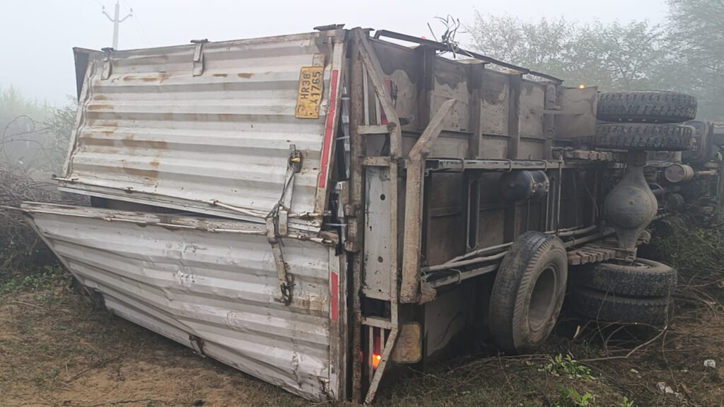 Jalaun news today । जालौन क्षेत्र में कूलर लेकर आ रहा कंटेनर घने कोहरे के बीच बुंदेलखंड एक्सप्रेस वे के सर्विस रोड पर सहाव गांव के पास पलट गया। हादसे में चालक बाल बाल बच गया। मौके पर पहुंची पुलिस ने यातायात सामान्य कराया।