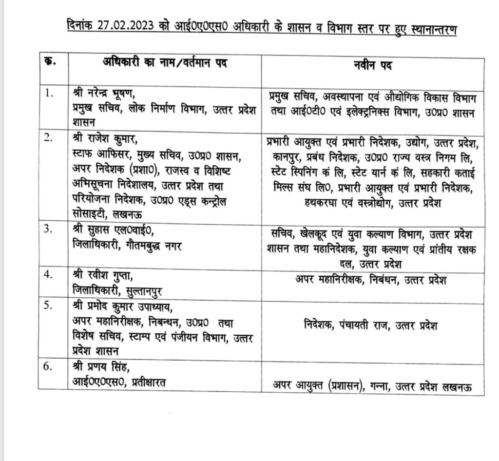 यूपी में चली आईएएस अधिकारियों की तवादला एक्सप्रेस,,, कई आईएएस अधिकारियों के हुए तवादले,, देखिये पूरी लिस्ट