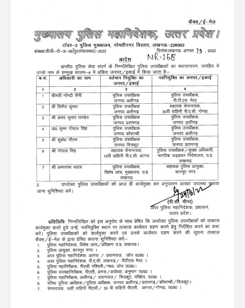 अमरनाथ यादव सहायक पुलिस आयुक्त कानपुर नगर। देखिये पूरी लिस्ट,,,