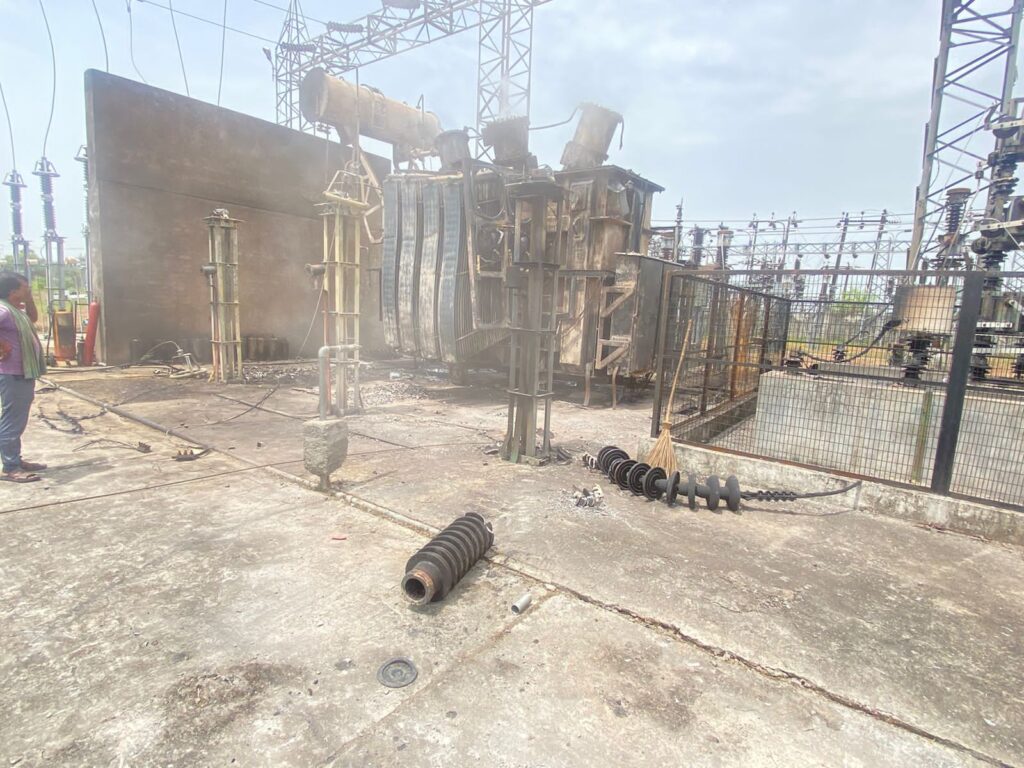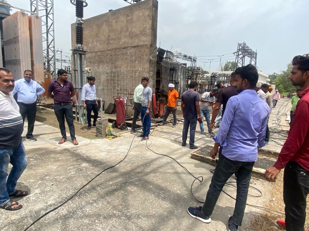 Jalaun news today । उत्तर प्रदेश के जालौन जनपद में 132 केबी सब स्टेशन उदोतपुरा में स्थित 40 एमबीए ट्रांसफॉर्मर में रविवार की रात करीब 10 बजे शार्ट सर्किट से लगी आग से ट्रांसफॉर्मर धू धूकर जल उठा। आग लगने से केबिल समेत ट्रांसफार्मर क्षतिग्रस्त हुआ। नगर समेत आसपास की लगभग आधा दर्जन दमकल गाड़ियों ने लगभग छह घंटे की मशक्कत के बाद आग पर काबू पाया। क्षतिग्रस्त ट्रांसफार्मर में सोमवार की शाम तक निकलता रहा धुआं। उरई व झांसी के इंजीनियर नुकसान का आंकलन करने में जुटे। ट्रांसफार्मर क्षतिग्रस्त होने से आधा दर्जन सब स्टेशन के अंतर्गत आने वाले लगभग 250 से अधिक गांवों में अंधेरा पसरा।