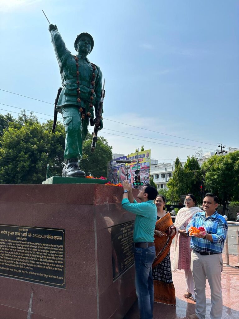 Lucknow news today । उत्तर प्रदेश की राजधानी लखनऊ में देश की रक्षा की खातिर अपने प्राणों की आहूति देने वाले वीर जवानों को नमन करते हुए कारगिल विजय दिवस के शुभ अवसर पर आज YUVA के सदस्यों द्वारा सीतापुर एवं लखनऊ में कैप्टेन मनोज पाण्डेय चौक पर पुष्पांजलि अर्पित कर शहीदों को नमन किया गया|