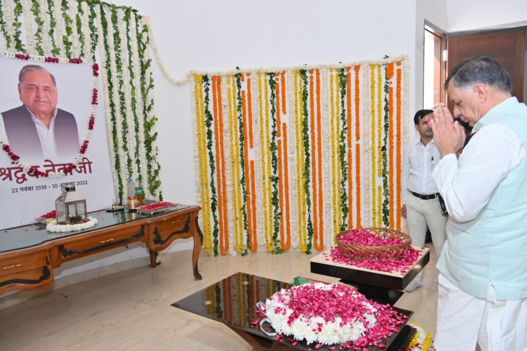 यूपी के विधानसभा अध्यक्ष सतीश महाना ने सैफई पहुंच कर सपा संरक्षक मुलायम सिंह यादव को अर्पित की श्रदांजलि,,