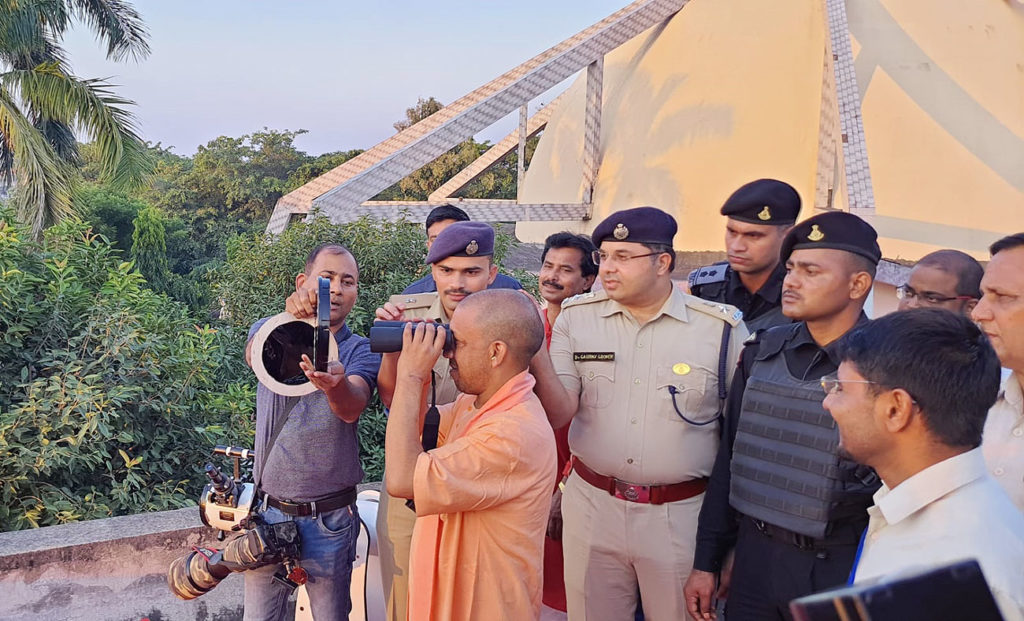 यूपी के मुख्यमंत्री योगी आदित्यनाथ ने आज पड़े आंशिक सूर्यग्रहण को दूरबीन के माध्यम से गोरखपुर में स्थित नक्षत्रशाला में लगे उपकरणों के माध्यम से देखा। इस अवसर पर उन्होंने मीडिया से बात करते हुए कहा कि यह ब्रह्मांड की अद्भुत घटनाओं में से एक है।