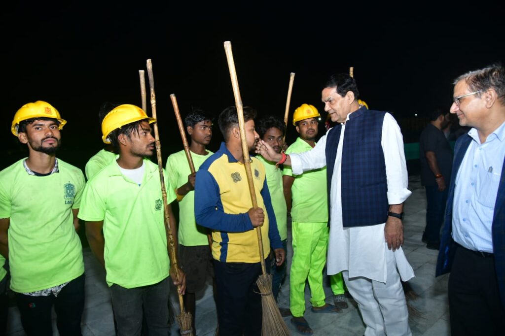 मंत्री द्वारा पूजा स्थल पर नगर निगम द्वारा की जाने वाली व्यवस्थाओं की सराहना की गयी तथा विशेष सफाई एवं उच्च कोटि की प्रकाश व्यवस्था बनाये रखने के लिए सम्बन्धित को निर्देश दिये। इसके अतिरिक्त पूजा स्थल पर कार्यरत सफाई कर्मियों का उत्साहवर्धन करते हुए पूरे परिश्रम के साथ बेहतर कार्य करते रहने हेतु कहा गया।