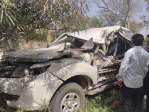 अज्ञात वाहन ने मारी कार में टक्कर,, तीन घायल, दो की हालत गंभीर,