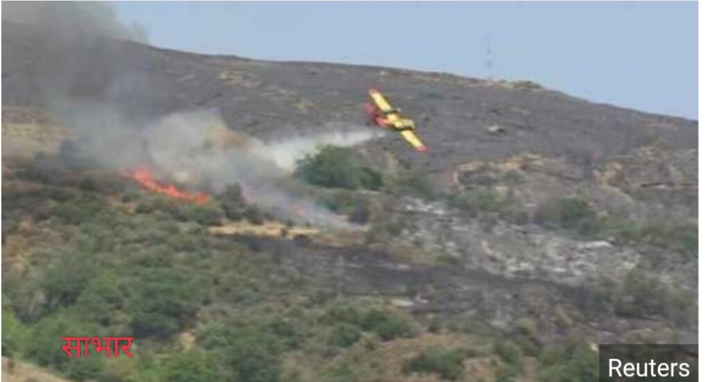 मीडिया रिपोर्ट्स के अनुसार यूरोप के कई देशों में तापमान में वृद्धि की वजह से जगह-जगह आग लगने की घटनाएं हो रही हैं। ( साभार बीबीसी)